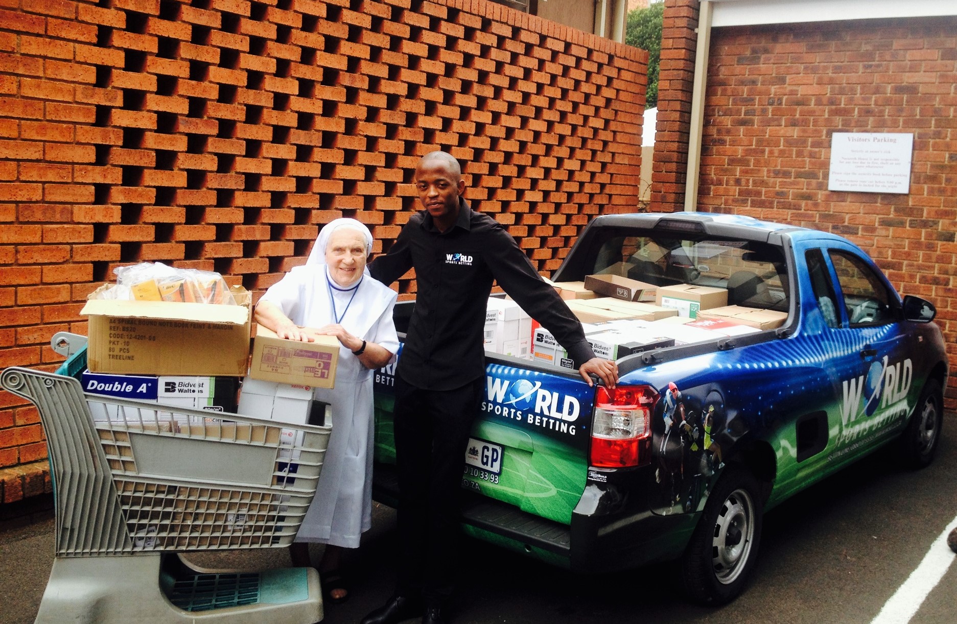 World Sports Betting brought some relieve to the Sisters of the Nazareth home today when they delivered a whole bakkie load of Stationary to the home.