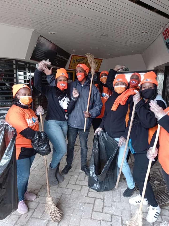 The Orange Crew (WSB Gauteng staff) on clean up duties in Soweto this morning #TeamWSB #CleanUpSA![]()