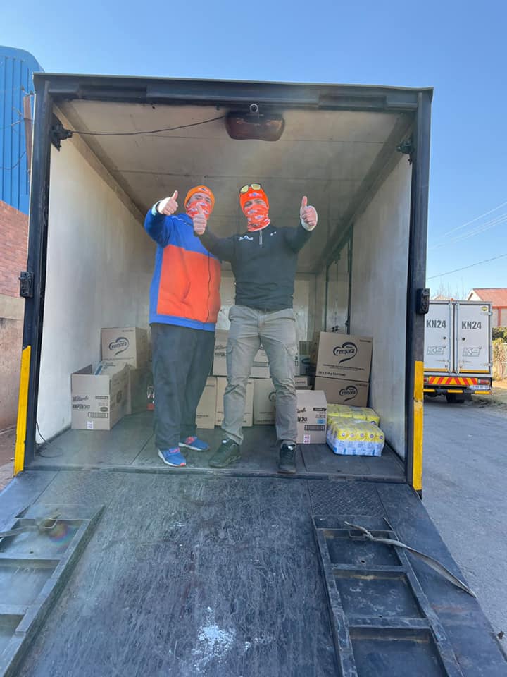 Few shots from this morning as 2 trucks loaded with food and baby formula sponsored by World Sports Betting heads off to Durban to support the communities recovering from last week’s unfortunate looting and violence.